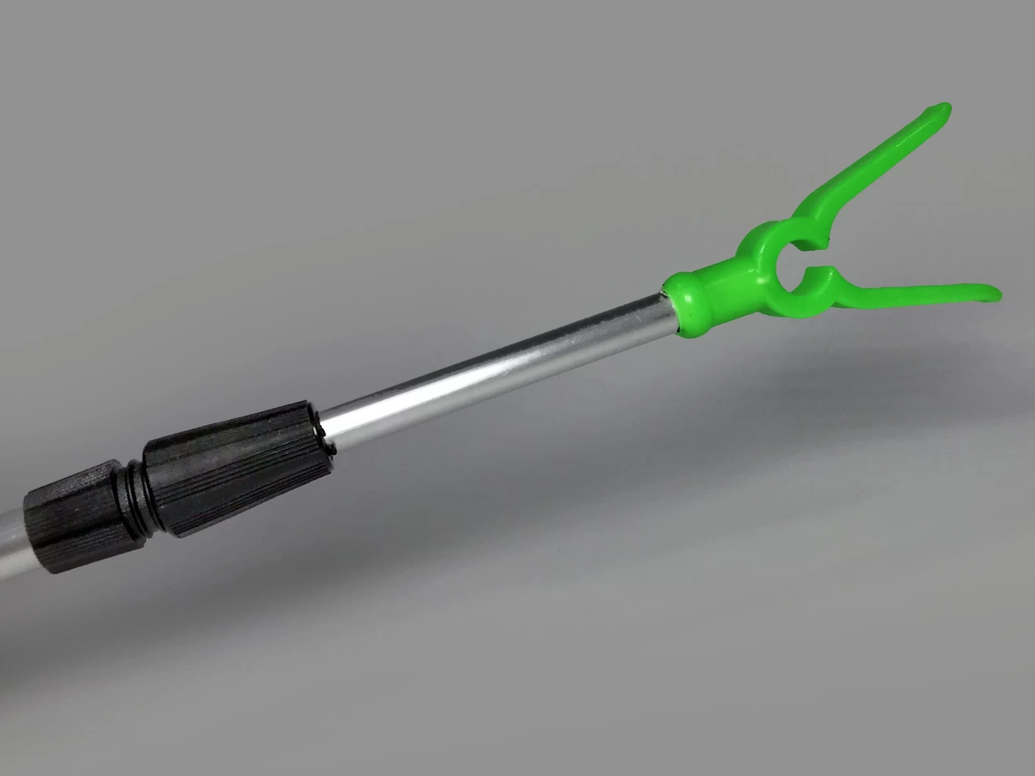 Sturdy aluminium bankstick with v-shaped rod rest head.