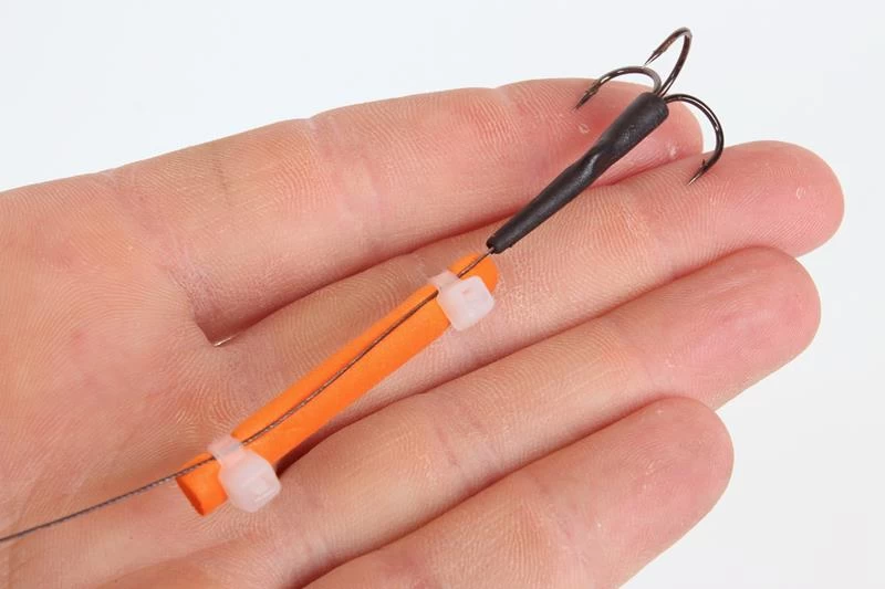 Attach approximately 1/3 of a length of buoyant foam to the trace between the treble hooks using two zip ties. Attach bait and trim the foam to size so that the bait just sinks. You now have a critically balanced bait that will always land with the hooks facing upwards.