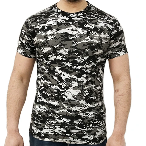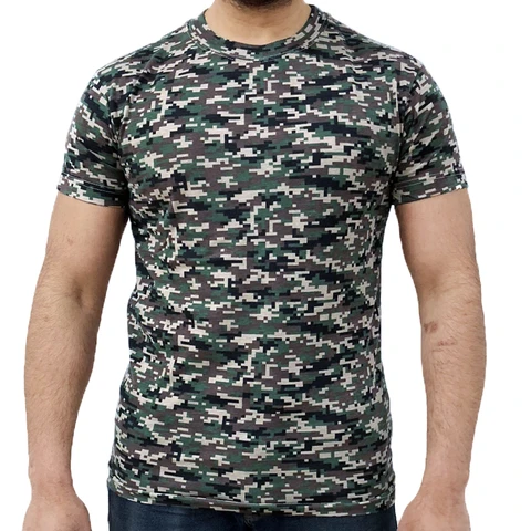 Digital Camouflage T-Shirt made from 200gsm blend of 35% cotton and 65% polyester. The t-shirt has a reinforced neck with double stitching.