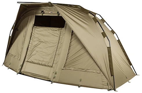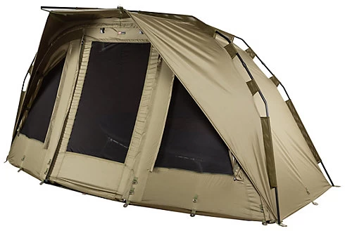 This smart compact shelter has a central ‘block’ where the 5 ribs and the peak bars are all connected. Because the ribs fold out in an accordion-like manner, the tent is set-up ultra-fast and no valuable fishing time is wasted. Thanks to the clever design, the Stealth Bloxx is incredibly versatile. Take out the entire front and you have the perfect day shelter. Put the wrap on top and you have an isolated bivvy with increased space at the front.