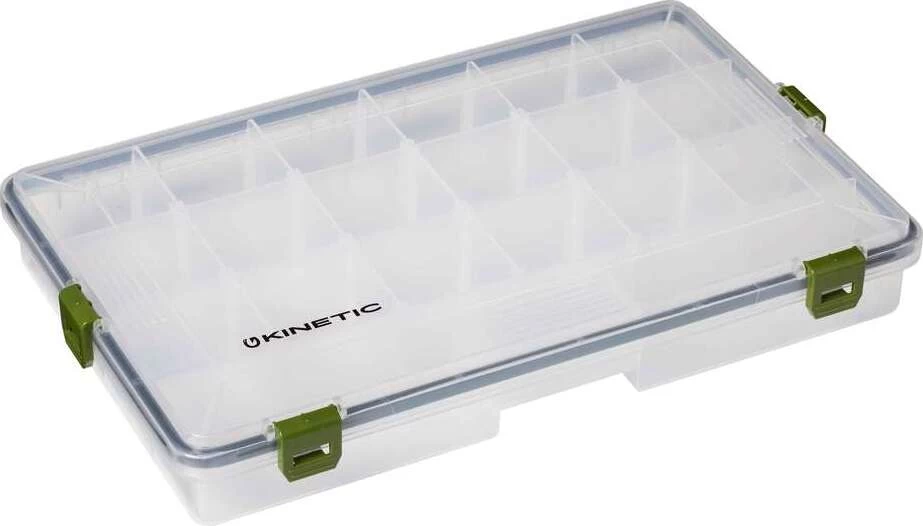 With this line of lures boxes, Kinetic wanted to design the perfect travel companion for all fishermen. Kinetic have used a high quality transparent, durable and soft bait proof material to shape these international standard boxes. A waterproof sealing and four tough locking clamps just make this a “need to have” box for all of us.