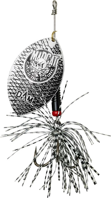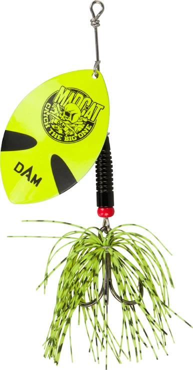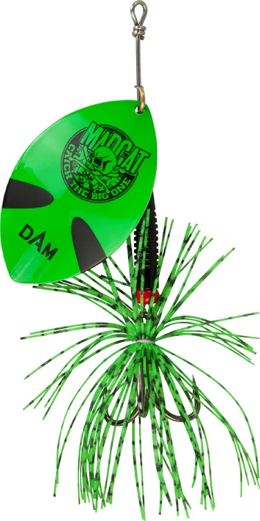 Catfish spinner with an extra big blade, for strong vibrations. With an extra thick wire and a heavy duty treble hook, size 2/0.