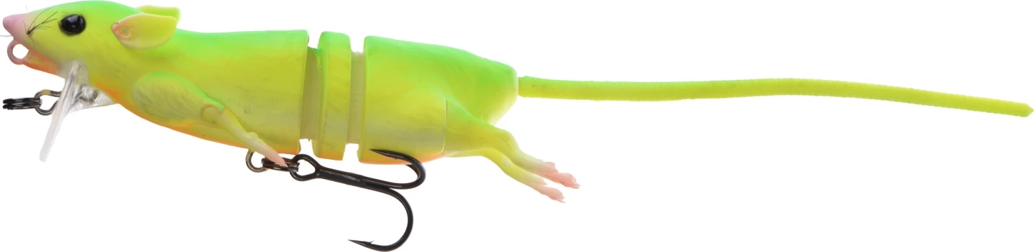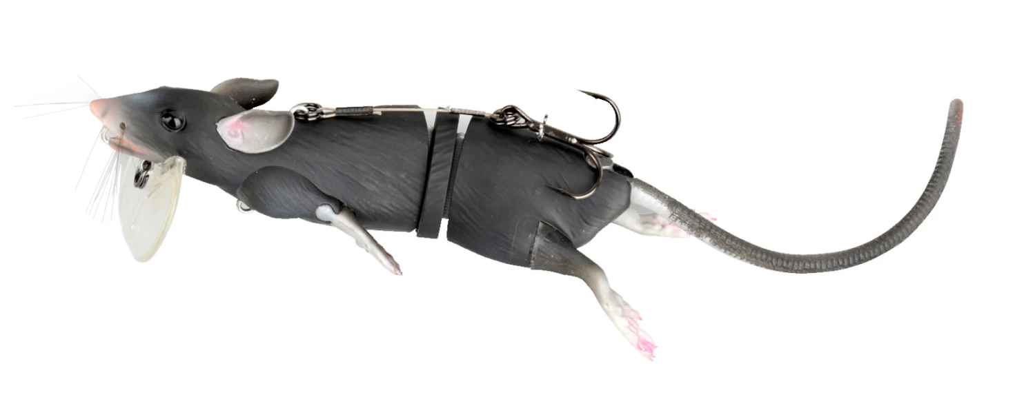 The Large size can be fished thru weedy and snaggy areas with a stinger and treble hook clipped on the back. The Soft Ears, feet and tail, truly sets a new standard for a rat imitation lure.