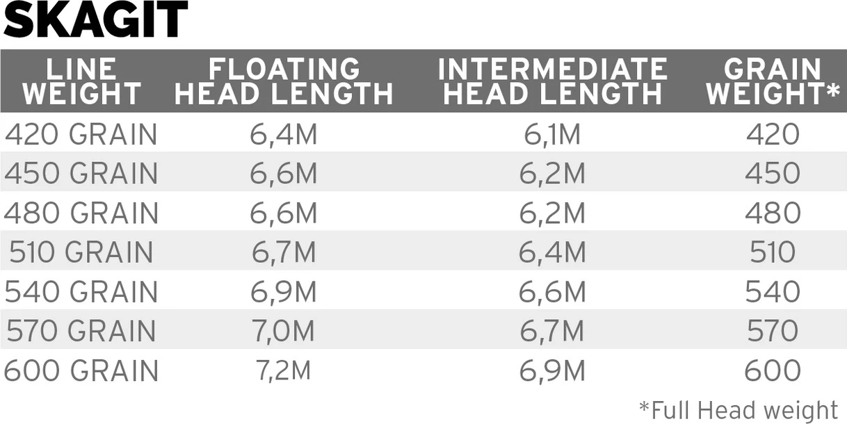 Floating Skagit Line for Steelhead and Salmon. Compact, powerful design with a completely tapered belly for accurate delivery and reliable turnover