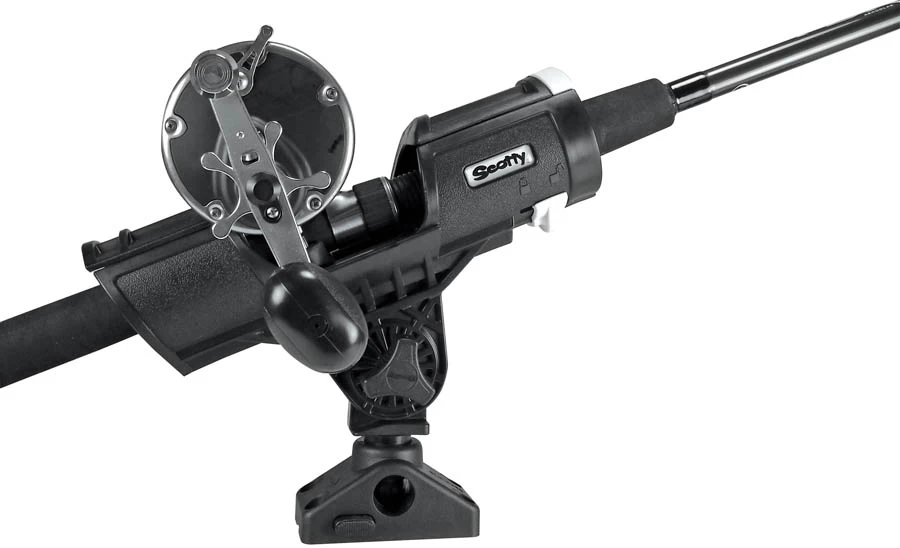 Includes 241L Locking “push button” Combination Side / Deck Mount. To use the new Scotty “lock-down” mount system, simply choose the best direction to fish from and insert the rod holder or accessory, pushing the post straight down into the mount. Can be mounted on top or side of gunnel.