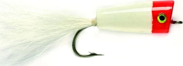 This red / white combo is pretty much lethal and for some reason irresistible to most predator fish. Skip or pop this pattern through the top of the water for best results and watch with baited breath as the monsters strike. One of the best sellers for sure. Formed around the Mustad S74S, the right hook for the job.