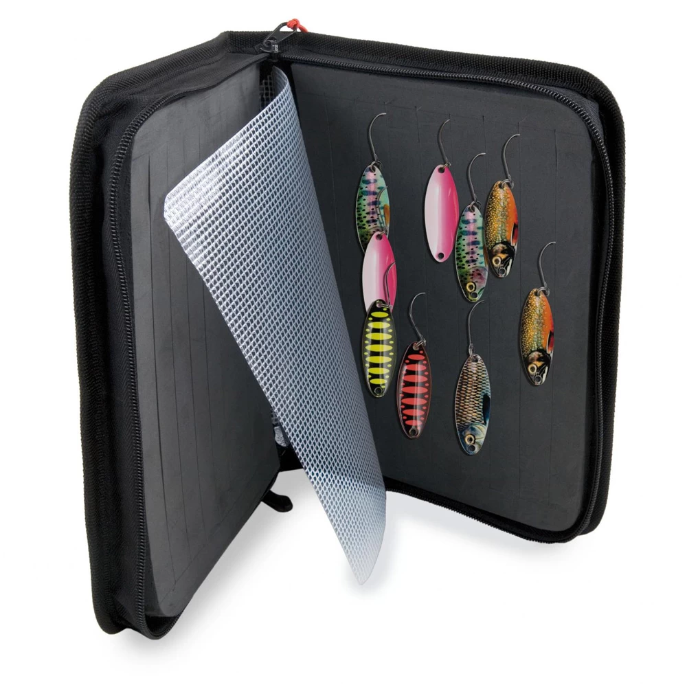 This high-quality Oxford fabric case has been designed to allow you to always have your favourite spoon lures with you in order and at your fingertips. EVA walls with vertical engraving, in addition to firmly fastening the hooks, will allow you to easily keep the interior dry by increasing the life of your baits.
