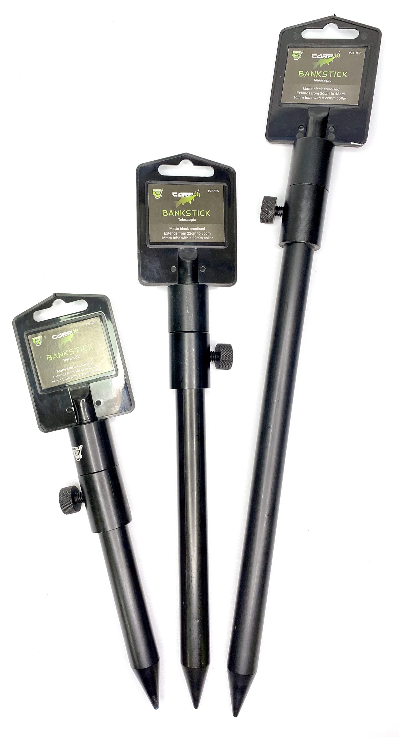 Matte Black Anodised telescopic Bank sticks. 16mm tube with a 22cm collar.